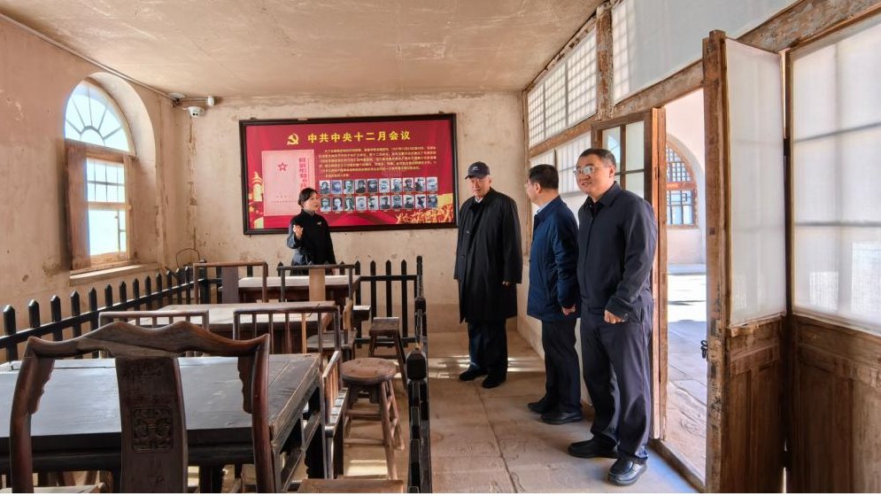 11月14日上午,朱善璐来到米脂县杨家沟革命旧址参观调研。米脂县副县长高鹏陪同,县委书记王曼华专程拜会。朱善璐深切赞叹中共中央转战陕北期间所展现出的伟大智慧与战略远见,并高度赞扬陕北人民为中国革命胜利所作出的不可磨灭的贡献。