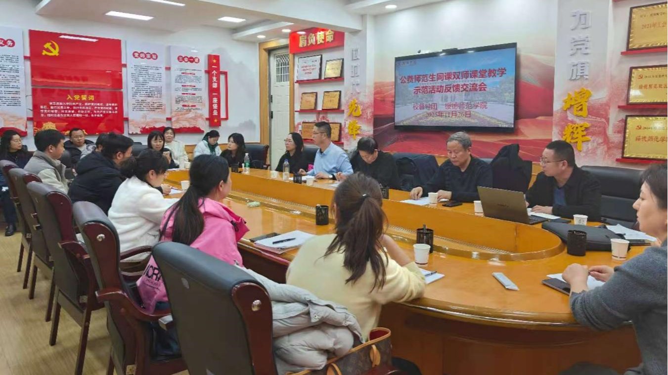督导活动结束后,督导团组织召开了公费师范生“同课双师”课堂教学示范活动反馈交流会。会上,督导团团长王瑞斌教授首先对此次督导工作进行了全面总结,充分肯定了绥德师范学院在公费师范生培养方面取得的成绩,特别是"同课双师"教学模式形式的创新实践。他指出,该模式通过校本部教师与绥德师范学院教师协同授课,有效提升了教学效果,为师范生培养提供了可复制的范式。