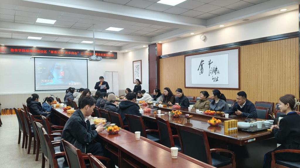 阳春三月,暖意融融。为庆祝第116个“三八”国际劳动妇女节,3月8日下午,榆林大学绥德师范学院在第三会议室举办以“茶香沁心 芳华自在”为主题的茶文化体验活动,学院全体女教职工欢聚一堂,在清雅茶香中共度温馨雅致的节日。学院院长张敬全出席活动并致辞。